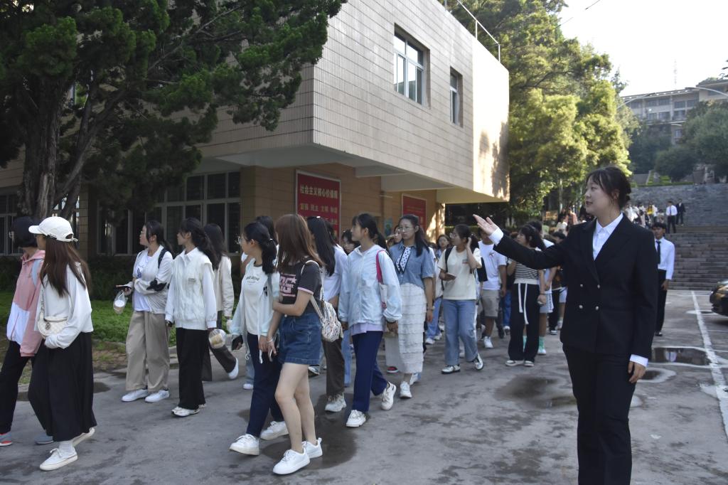 为对2023级新生开展校史教育,让新同学沉浸式体验学校发展历史、校训、校风的内涵和学校建设成就,增强学生的认同感和归属感,2023年9月3日8:30,玉溪师范学院商学院组织2023级新生开展校园研学游活动。商学院导游协会负责研学活动设计并进行讲解。