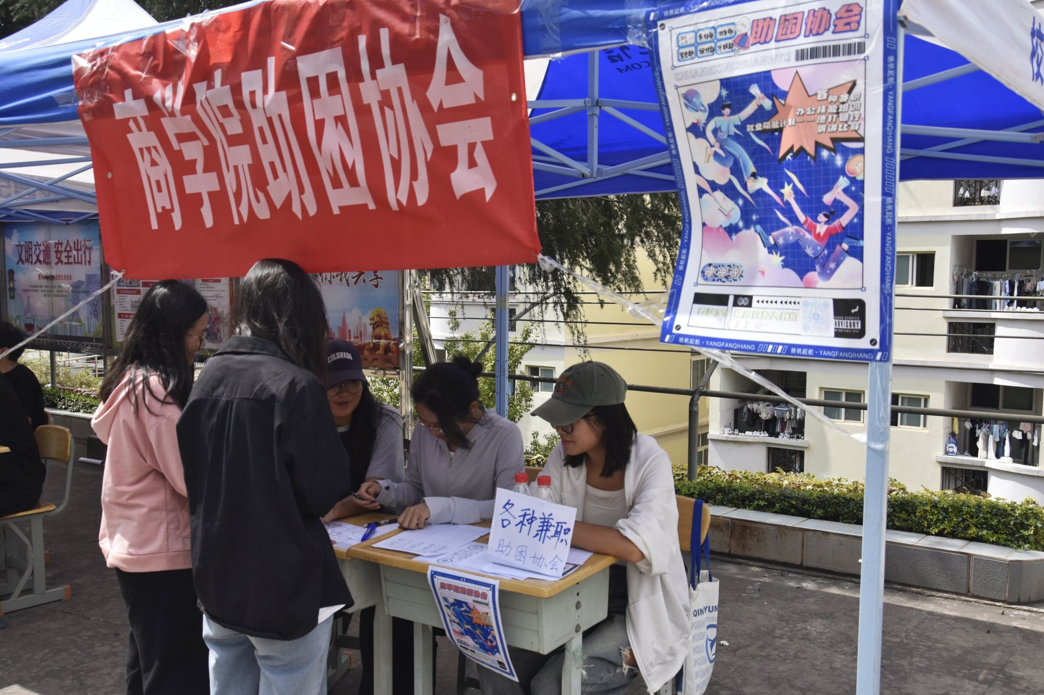 商学院的六个招新社团都各具特色、独具风采。各社团棚子矗立于品味苑周围,各社团招新海报置于棚前,其设计新颖,详细介绍了社团及日常活动内容。各社团负责人向同学们分发宣传海报,热情且耐心地介绍社团,让同学们更好地了解社团活动。活动期间,各社团为招新出谋划策,给积极报名的同学分发与社团有关的各种各样神秘小礼品,吸引同学们踊跃参与到活动中。整个迎新现场精彩纷呈,同学们都积极咨询自己想要了解的社团活动,致力于让自己的大学生活更加绚丽多彩,同时,扩大社交圈,锻炼自我能力。