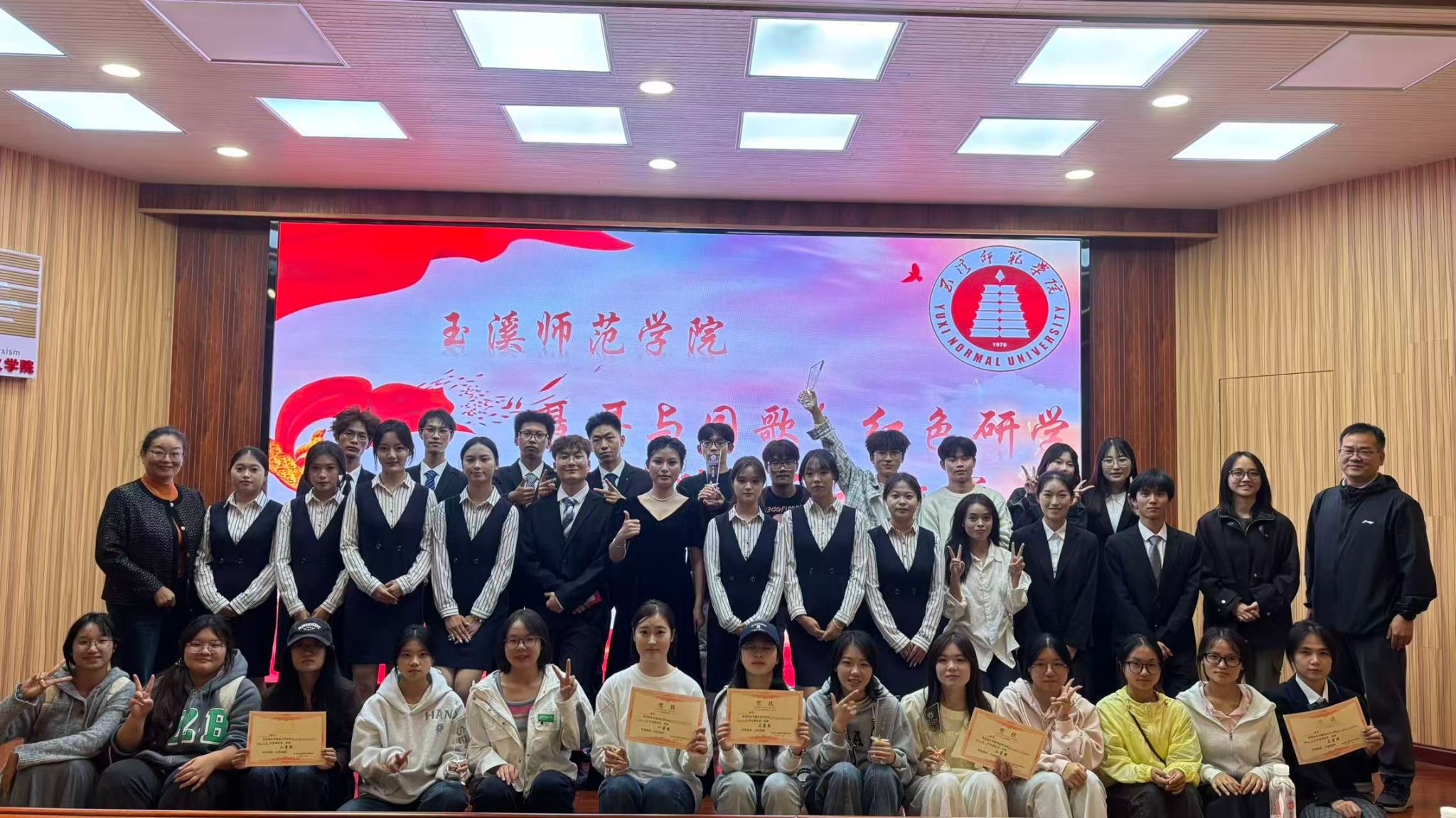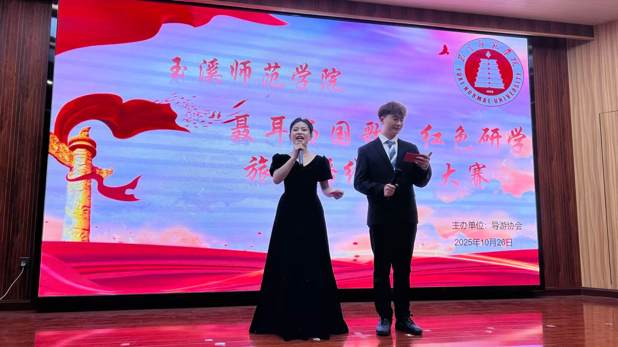 2025年10月26日晚,玉溪师范学院四耳报告厅内气氛热烈,掌声不断。由商学院导游协会承办的“聂耳与国歌”红色研学路线设计大赛决赛在此隆重举行。在两个半小时的精彩角逐中,参赛学子们以创新的思维和专业的视角,为现场观众呈现了一场关于红色文化与旅游融合发展的思想盛宴。