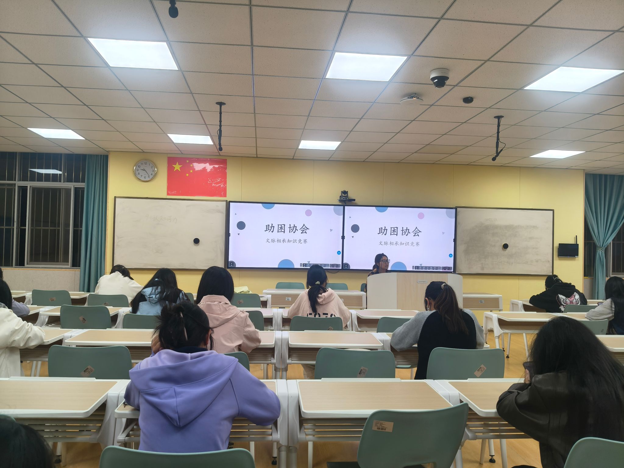 为深入学习贯彻习近平文化思想,传承中华优秀传统文化,增强中华文明的传播力、影响力,铸牢中华民族共同体意识,引导广大学子坚定文化自信,商学院助困协会于2025年10月24日举办了主题为“文脉赓续启新程,书香绵延竞芳华”的中华传统文化知识竞赛。