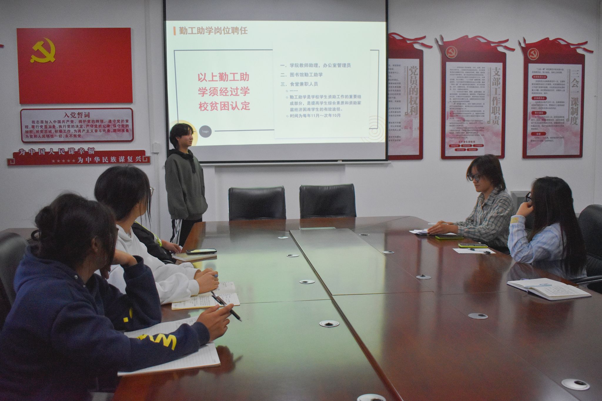 本次宣讲会邀请到了商学院学生会学习部部长郑璟琦、生活部部长申灿两位同学进行相关政策的解读,两位同学详细介绍了我校可提供的帮扶政策与历年的帮扶覆盖情况、帮扶主体与帮扶经济额度。两位同学的讲解,让每一位参与的同学对目前的帮扶政策都有了较全面的认识,对解决自身经济困顿、减少学习阻碍等,会有很大的帮助。宣讲会还设置了互动环节,参与的同学们积极提问,协会负责人与宣讲员一一给予解答和经验指导,氛围融洽和睦。参会的同学纷纷表示,此次宣讲会受益匪浅。