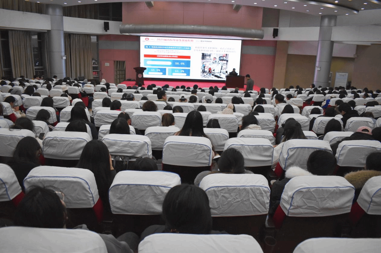 为推进2025届毕业生的就业指导工作,玉溪师范学院商学院于2025年1月6日19:00在图书馆多元学术报告厅举行了2025届毕业生就业工作动员会暨毕业生思政课讲座。此次讲座的主讲人是商学院党委书记叶宏教授和辅导员杨加堂老师。商学院2025届毕业生和毕业班班主任聆听了讲座。