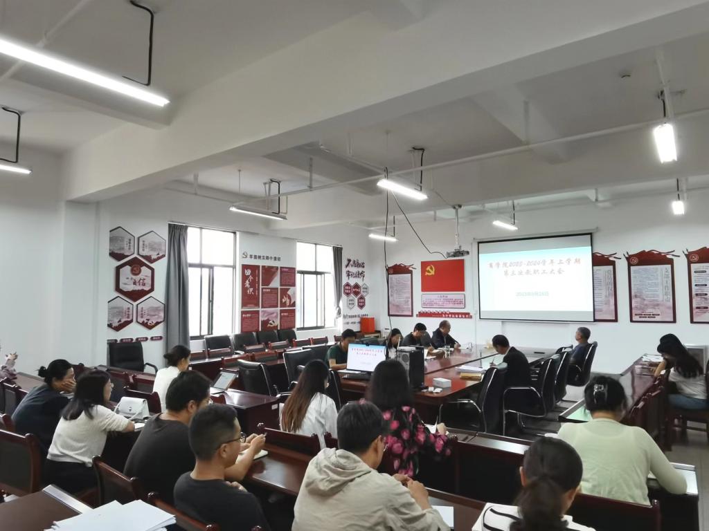 2023年9月28日(星期四)15:00商学院在实训大楼A栋601会议室召开了2023-2024学年上学期第三次教职工大会,会议由商学院院长李崇科主持。