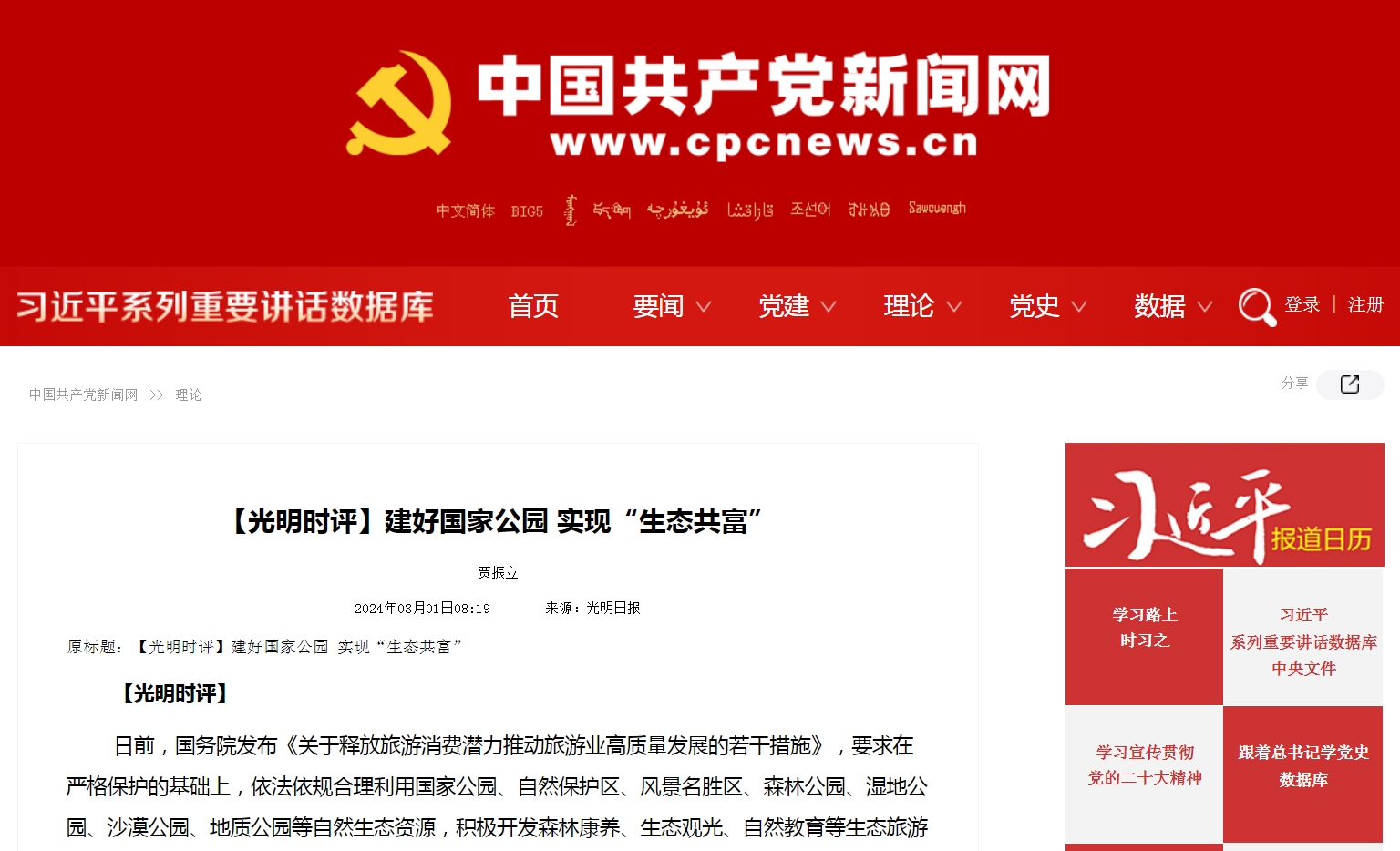 原标题:【光明时评】建好国家公园 实现“生态共富”