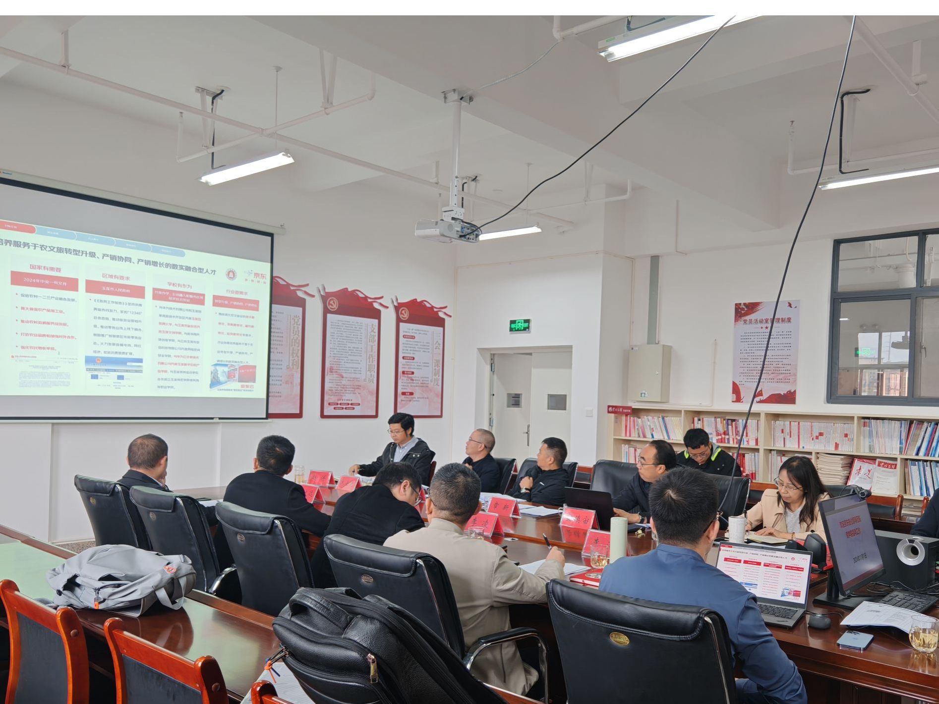 11月1日,现代产业学院建设研讨会在玉溪师范学院商学院召开。京东产教融合全国业务总监李凌、区域总监李潘、教育解决方案专家岳辛,云南中大科技总经理舒余伍、副总经理祁文远;玉溪师范学院教务处处长安镇宙、副处长李学儒,工学院院长羊波、副院长沐士光,以及商学院领导班子参会。