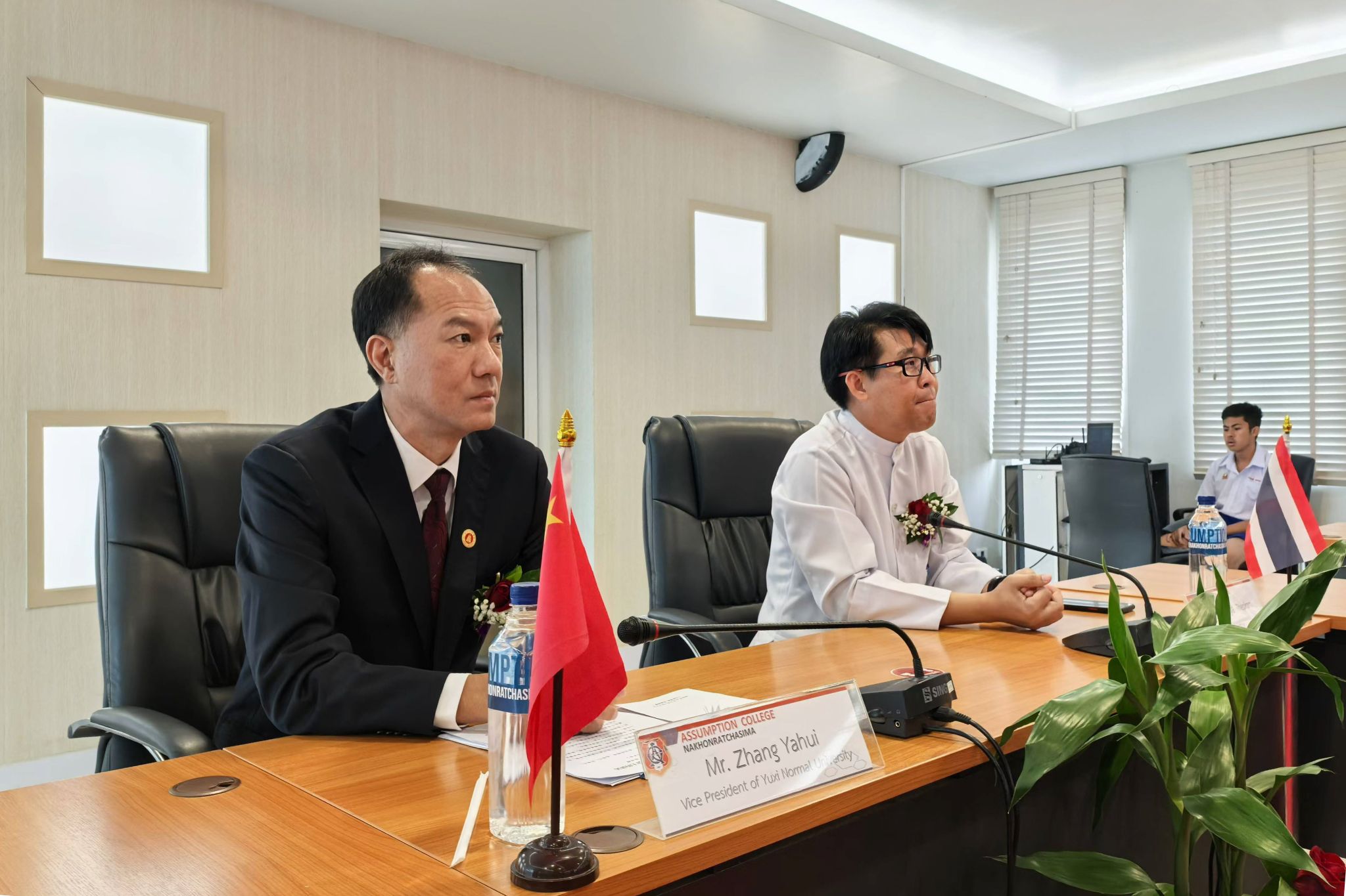 代表团随后访问了呵叻易三仓学校。校长威塔亚博士热情接待代表团一行,双方就泰国高中生留学中国的意愿进行了深入探讨。与泰国学生面对面交流,就留学玉溪师范学院做专题宣讲与答疑,并捐赠礼物共建两校汉语言文化中心。