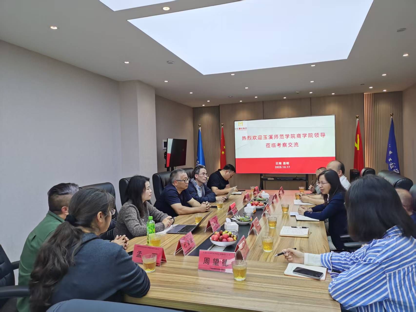 为深化产教融合,推动校企合作,拓宽学生实习与就业渠道,2025年10月17日,玉溪师范学院商学院院长叶宏率队赴云南世纪慧铭集团有限公司开展合作交流与访企拓岗活动,商学院党委副书记胡飞、副院长马小宁及各系部负责人参加此次活动。