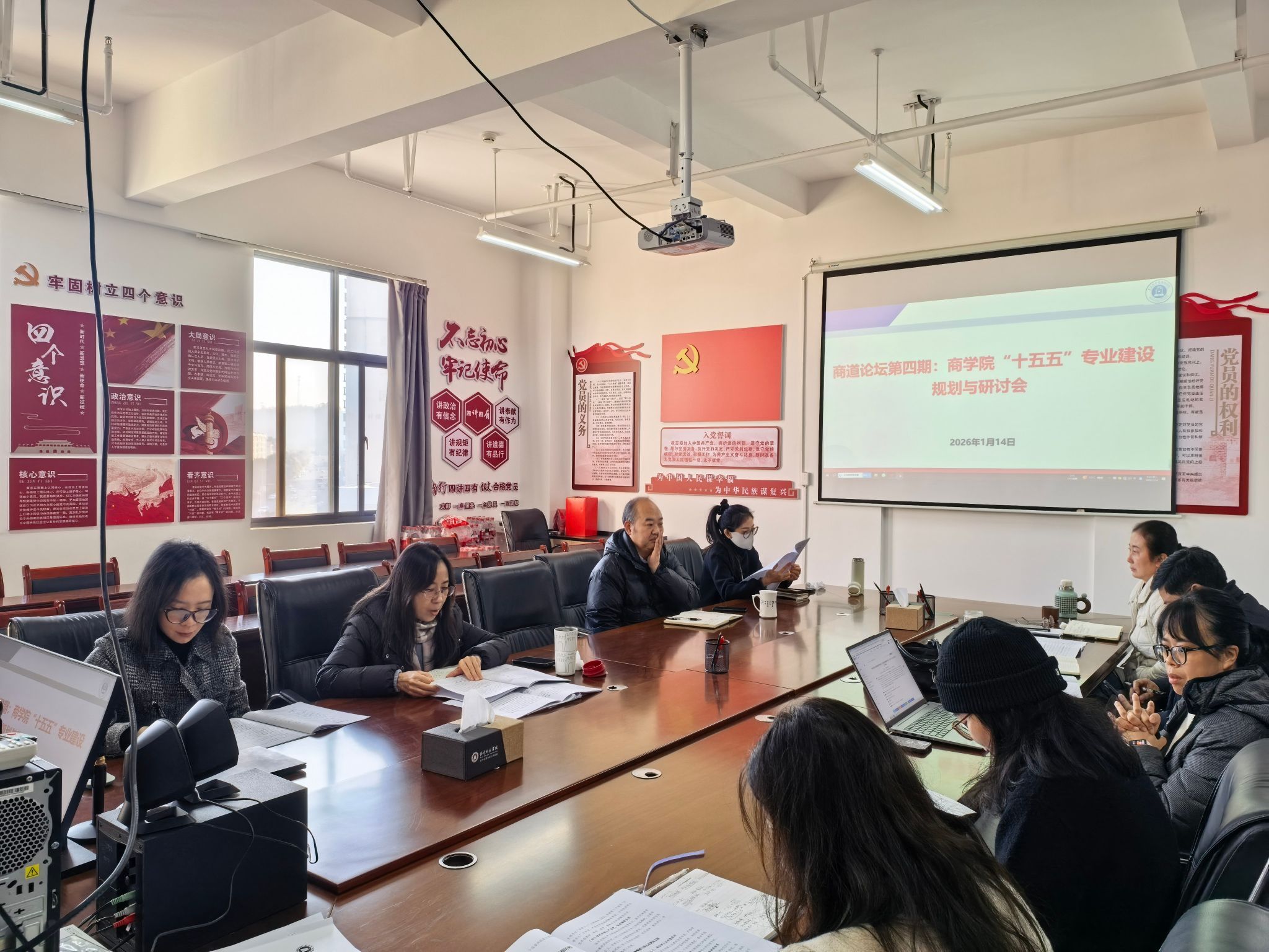 2026年1月14日上午,玉溪师范学院商学院在实训大楼A604会议室组织商学院“商道论坛”第四期活动,活动主题是商学院“十五五”专业建设规划与研讨。会议围绕学院“十五五”规划纲要与各专业建设路径展开深入研讨,旨在凝聚共识、明晰方向,为学院未来五年高质量发展奠定坚实基础。商学院院长叶宏、副院长马小宁、赵洋,各专业负责人、教学秘书及办公室主任等参加研讨会。