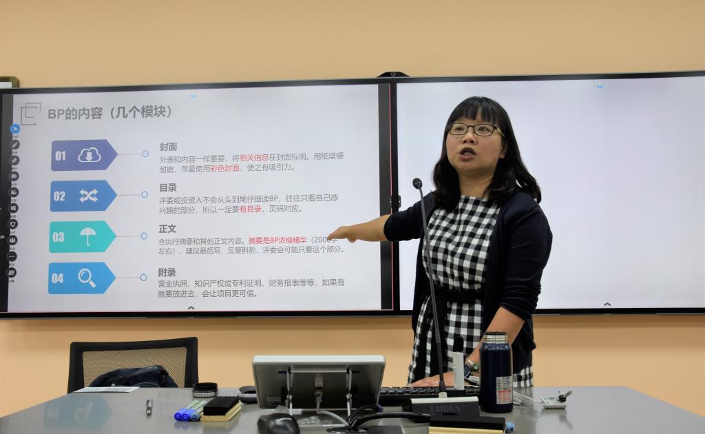 接下来,沈老师就整个计划书所包含的内容:封面、目录、正文、附录等进行逐一讲解,并着重强调了整个文本中应用语规范,形式美观,图文并茂,注重细节。此外,沈老师着重强调整个商业计划书一定要主题鲜明、定位精准、逻辑清晰、内容丰富、创新性好。并强调整个BP中产品或服务以及团队的重要性。最后,沈老师针对我校的实际情况,为同学们讲述了红色筑梦之旅赛道,建议同学们以该赛道着手,从而获得更优的成绩。