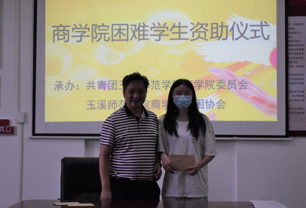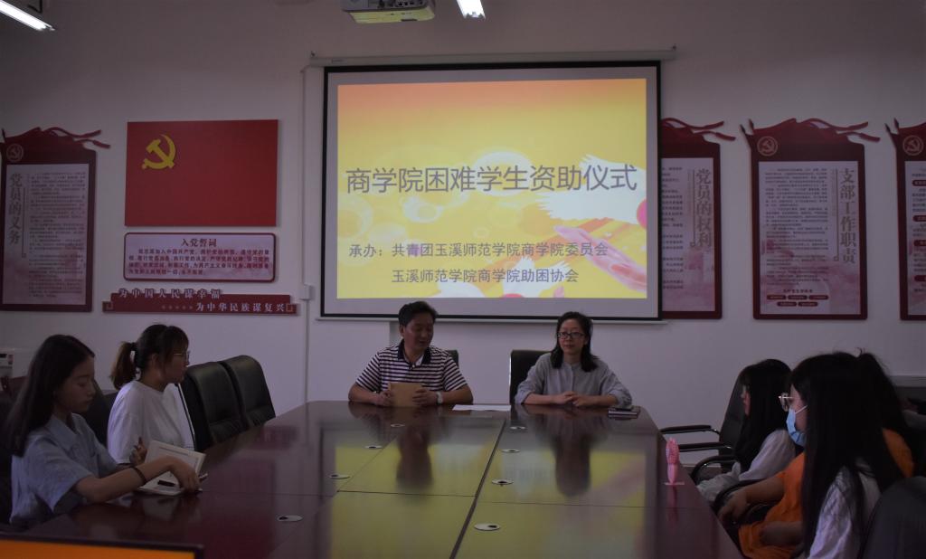 爱心助学,师生情深。为加强对教育自助政策的落实,扎实做好学生资助工作,为经济困难学生编织安心上学的“安全网”,商学院于2021年5月25日18:00在实训大楼A座601开展了困难学生资助仪式。商学院党委书记马瑜老师,商学院团委书记李胤珠和助团协会负责人参加了此次资助仪式。