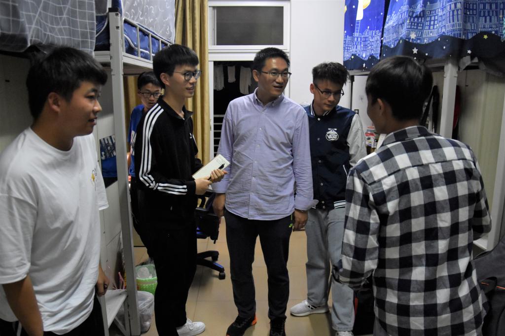 走访过程中,罗辉老师与同学们进行亲切的交流,仔细了解同学们对学校的适应情况,询问同学们在生活和学习上遇到的困难,耐心解答着同学们的每一个疑惑。罗辉老师特地叮嘱同学们在国庆放假外出期间注意安全并做好防疫措施,勉励同学们培养良好的生活和学习习惯,引领同学们树立正确的目标并为之不断奋斗。同学们也同老师分享了自己的学习心得与学习规划,老师对此给予了肯定与鼓励,希望同学们不忘初心,努力奋斗实现梦想。老师亲切的问候让同学们倍感温暖,同学们也积极热情地回应。一番真切交谈之后,同学们纷纷表达对老师的感谢,表示在今后的学习中会努力规划好自己的人生并努力拼搏。