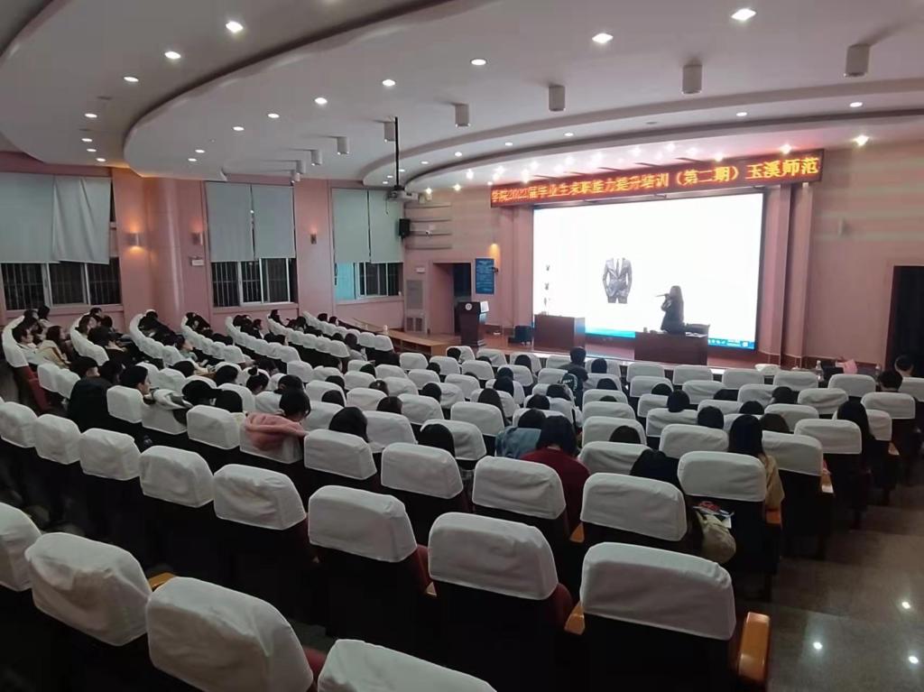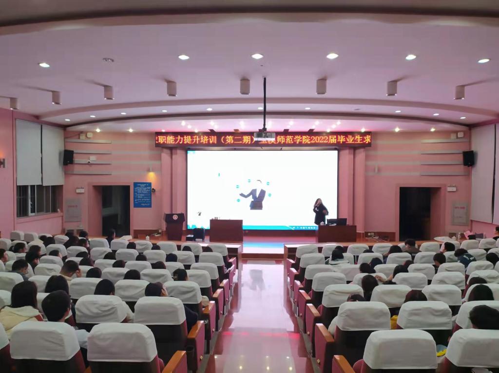 为促进2022届毕业生就业工作的顺利开展,提升个人的求职技能,匹配企业单位的用人需求,玉溪师范学院于2021年11月12日19:00在科学讲堂开展第二期2022届毕业生求职能力提升培训活动,主题为求职形象礼仪培训。本次活动由玉溪汝智美容公司讲师主讲,商学院2022届毕业生参与此次活动。
