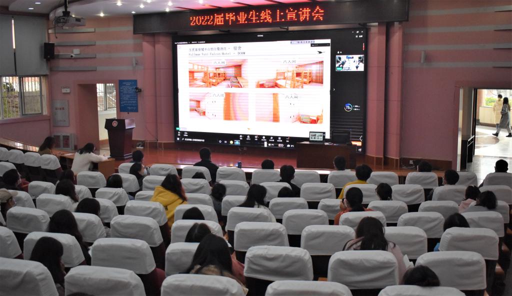 为更好地拓宽毕业生就业渠道,实现良好就业,帮助用人单位解决人才需求的问题。商学院于2021年12月30日10:00在科学讲堂开展2022届毕业生线上宣讲活动,本次活动由商学院辅导员杨加堂老师主持,玉溪富康城半山铂尔曼酒店主讲,2022届毕业生参与。