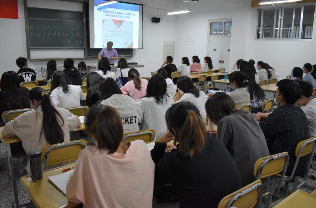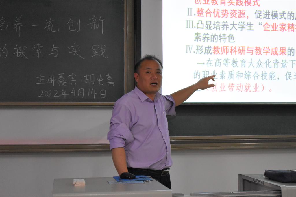 为推进创新创业教育与专业教育深度融合,充分调动同学们的创新创业积极性,培养综合素质能力较强的大学生,由学生中心、校团委主办,商学院承办的《地方高校培养一流创新创业人才的探索与实践》论坛于2022年4月14日19:00在13教207开展,此次论坛由胡电喜副教授主讲,商学院辅导员马艳琼老师主持此次活动,各班级同学参与