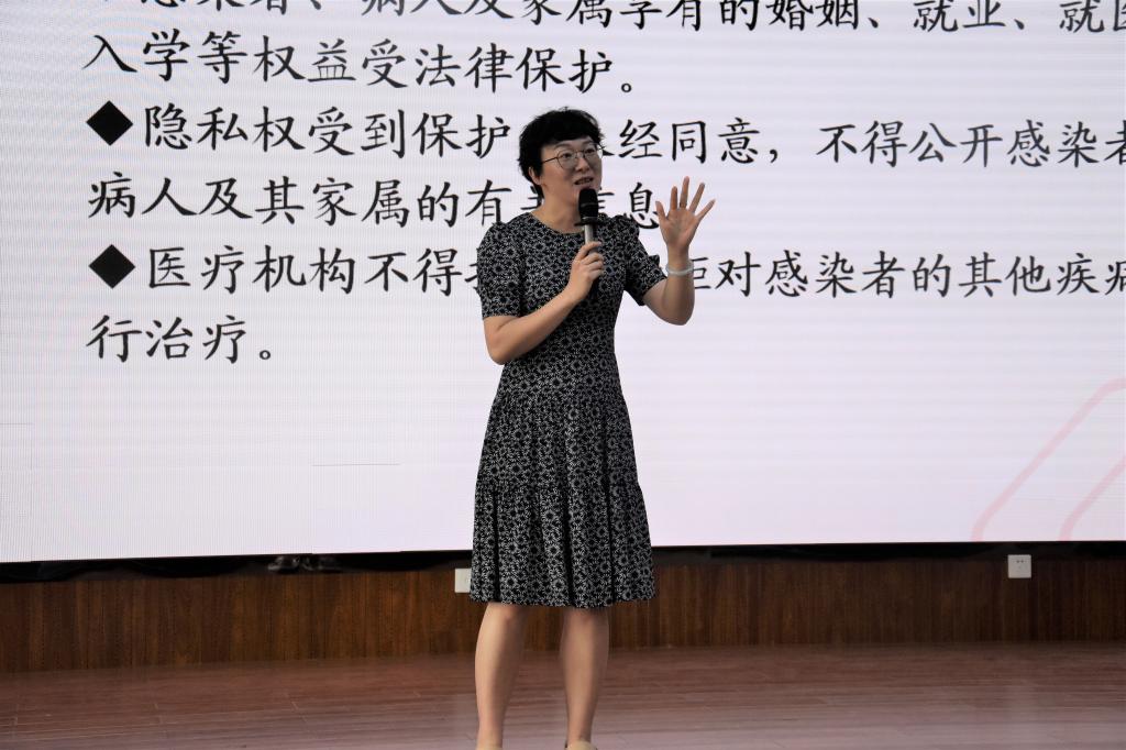 为了进一步帮助同学们了解艾滋病,增强艾滋病预防意识。玉溪师范学院于2022年5月13日16:00在大学生活动中心开展2022年春季学期预防艾滋病知识讲座。本次讲座由红塔区疾控中心艾滋病防治科吴艳医生主讲,各学院代表及玉溪师范学院红丝带爱心协会会员参与。
