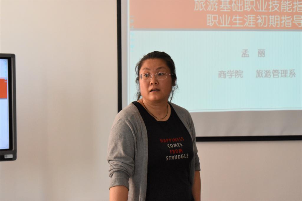 活动伊始,孟老师首先向同学们讲解了专业分流的基本情况与注意事项,告诫同学们无论选择什么专业,都要努力学习掌握扎实的专业知识,同时,孟老师结合自己积累的教学经验与丰富的阅历,分析了旅游职业的前瞻性和众多导游实际案例,并对旅游基础职业技能进行专业的指导。最后,老师向同学们提出了几点建议:第一,希望同学们扩大知识面,提升专业技能;第二,希望同学们注意把自己的所学专业和社会需求结合起来,注重实际技能的培养。整个现场气氛活跃,在热烈的掌声中,本次活动落下了帷幕。