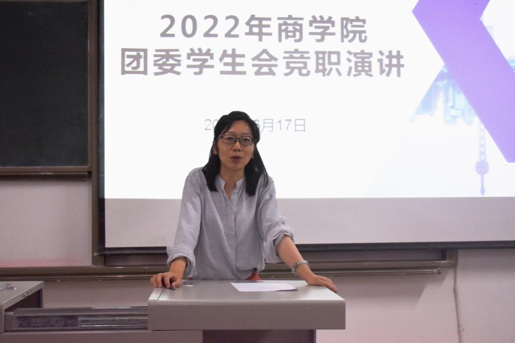 竞职演讲前,由杨加堂老师和马艳琼老师对本年学生工作进行总结,老师们肯定了同学们的辛勤付出,并表示商学院团委学生会的不断进步与取得的优秀成果离不开每一位同学的努力,希望同学们无论留任与否都要合理安排自己的时间,努力学习提高自我。演讲过程中,每一位同学都自信地走上讲台,总结自己一年来的工作情况、阐述对未来的期望及竞选的优势所在,他们语言表达得体,仪表端庄大方,在讲台上尽情地畅谈自己的工作经历与感受。最后,主席团对团干们一年来的工作表示感谢,也表达了对同学们及商学院团委学生会的美好祝愿。李胤珠老师做最后的点评,为大家讲述商学院团委学生会的历史,同时对同学们寄予殷切希望,希望大家无论在任何一个地方都要闪闪发光。