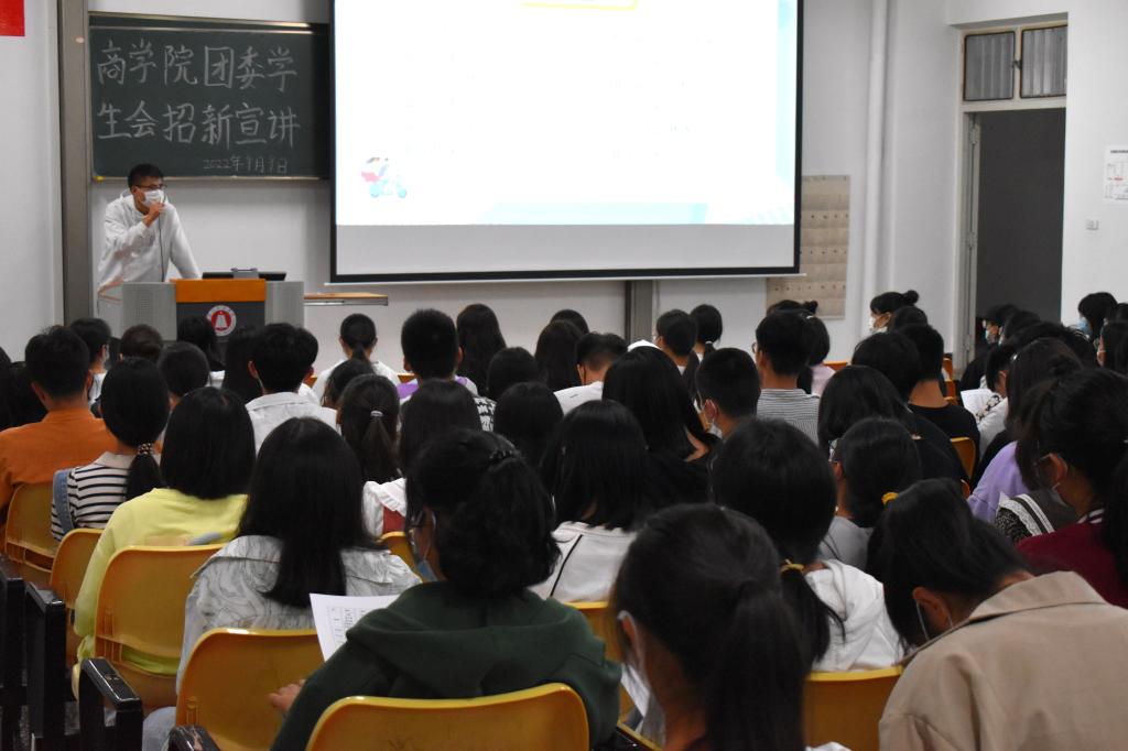 为了给商学院各组织和团体注入新鲜血液,增添新的活力与激情,更加高效全面地开展各项校园文化活动。2022年9月9日18:30,由商学院团委学生会组织的招新宣讲活动在14-102举行。参加此次宣讲的有商学院团委学生会全体成员、商学院青协负责人和各社团负责人以及商学院2022级新生。