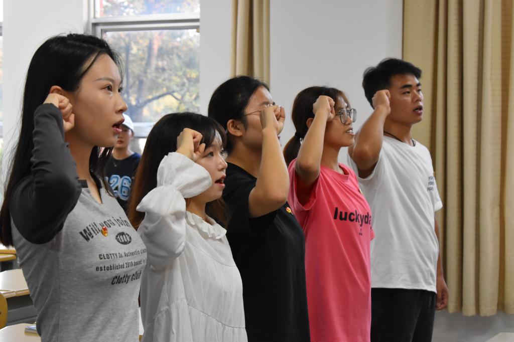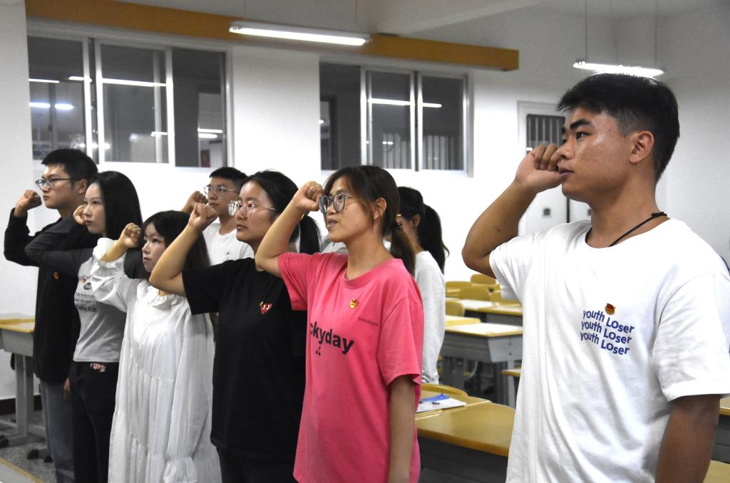 中国共产主义青年团是中国共产党领导的先进青年群众组织,为了壮大共青团的队伍,增强团组织的战斗力和凝聚力,2022年9月27日18:40老团员带领新团员在13教107进行了隆重的入团宣誓。此次活动由玉溪师范学院商学院团委组织部副部长纪恭田主持。
