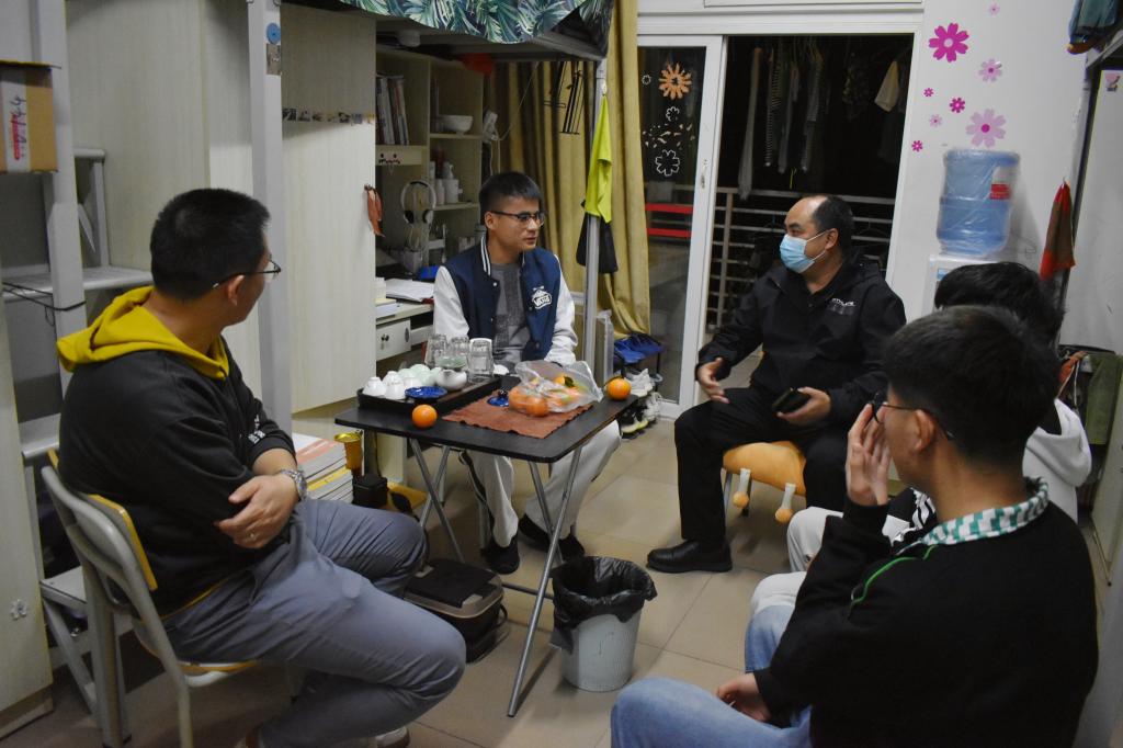 在走访过程中,杨副校长与同学们亲切交谈,了解大家在学习、生活方面遇到的问题。杨副校长强调在大学里学会集体生活非常重要,同学们要形成相互关心、团结互助的良好氛围;要求同学们要提前做好人生规划,扣好人生的第一粒扣子,努力学习、积极进取,做到刚健有为、自强不息;嘱咐同学们要敢于积极表达自己的想法,遇到困难要及时向学院、学校反映,确保同学们能住得安心、住得舒心。
