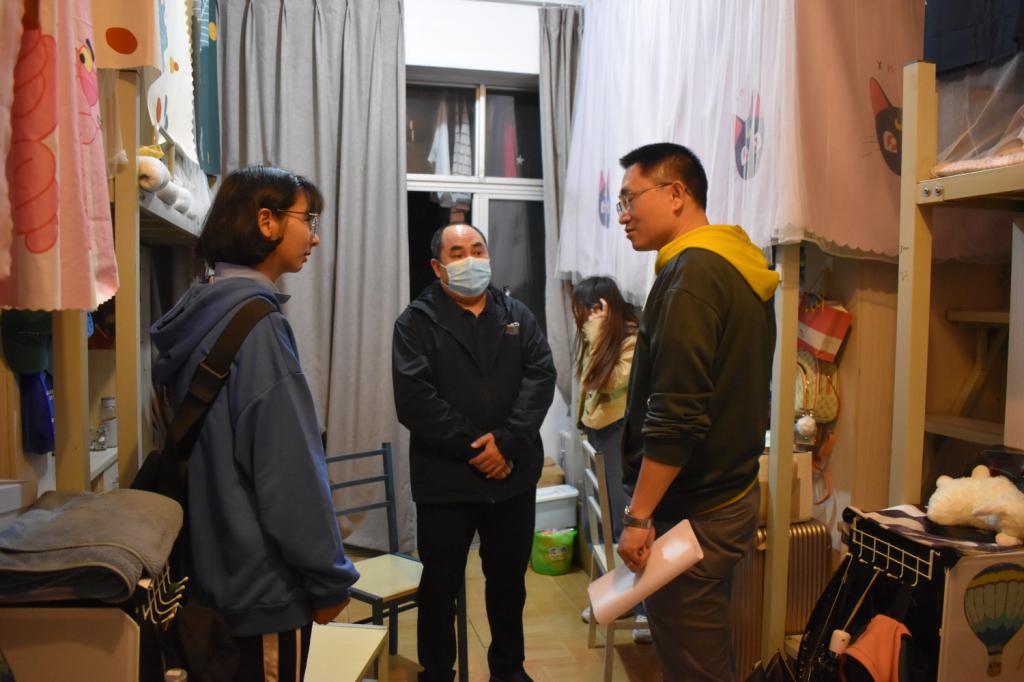 为了解同学们的思想动态及学习生活情况,及时帮助学生解决在校学习生活中遇到的问题,2022年11月2日20:30,杨伟副校长在商学院党委书记罗辉的陪同下走访了商学院宿舍。