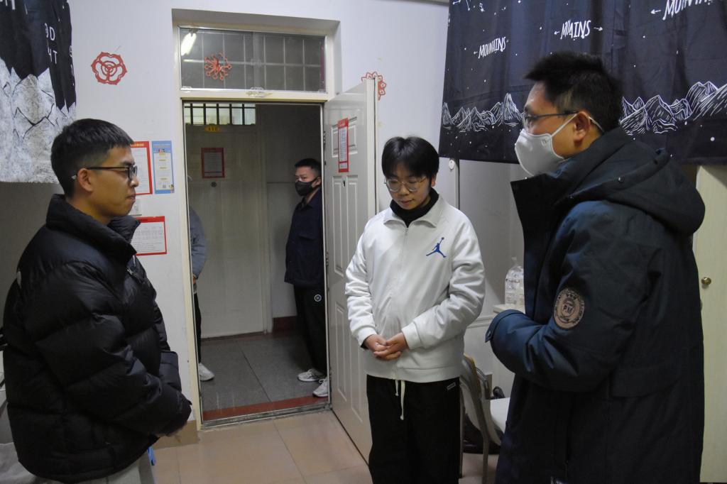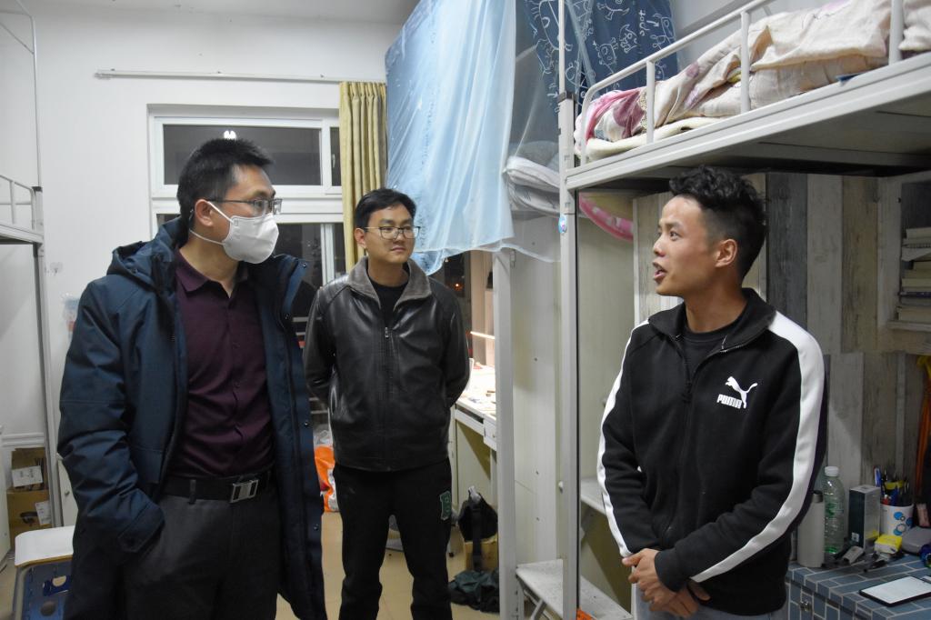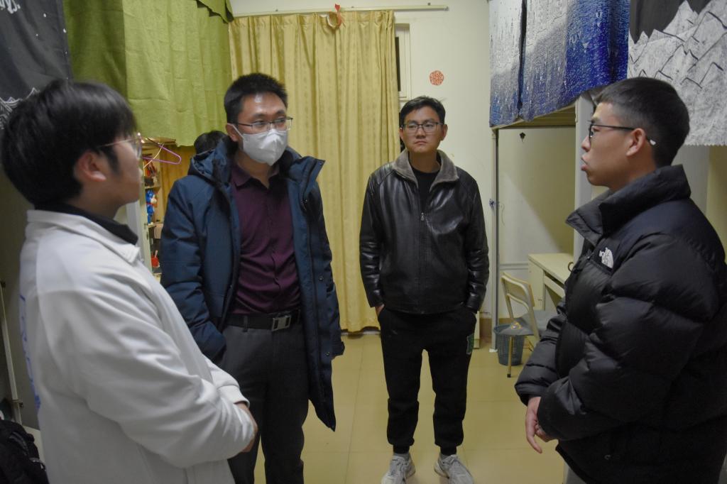 为及时了解同学们的心理、身体、学习和日常生活情况,确保开学工作有序开展、平稳进行,强化商学院学生的健康卫生意识,更好地迎接新学期,我院党委书记罗辉老师、辅导员杨加堂老师于2023年2月27日20:00走访了学生寝室。