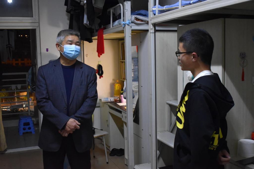 为进一步做好对学生教育、管理与服务,2023年3月5日21:00,玉溪师范学院商学院组织员李福国老师走访了男生宿舍F栋,实地了解学生在宿舍的学习、生活、心理等状况,商学院团委学生会主席团成员李鑫、邓淞尹随行。