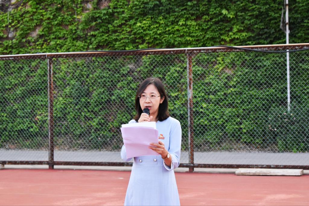 炎炎五月,晨光熹微,朝阳正从东方升起,金色的阳光洒满大地,在5月29日的清晨,商学院举行了新学期第一次升旗仪式。商学院的学子们聚集在田径场,整齐排列,身着校服,庄严肃穆地伫立着,静候升旗仪式的开始。脚踏晨风,面向朝阳,红旗向上,青年永随。7点10分,升旗仪式正式开始。英姿飒爽的国旗护卫队迈着整齐且铿锵的步伐一步步向升旗台走去。伴随着雄壮的国歌响起,鲜艳的五星红旗也冉冉升起,商学院的全体师生面向国旗庄严肃立,行注目礼。他们精神饱满,志气昂扬,眼里充满了对祖国的热爱与自豪。随后,商学院党委书记叶宏老师进行国旗下讲话,她指出青年是国家的未来、民族的希望,是国家经济社会发展的中坚力量。在民族复兴伟业的新征程上,青年人应充分发挥青年群体作为建设者的积极作用,勇于承担历史赋予的使命,在担当中历练,在尽责中成长。