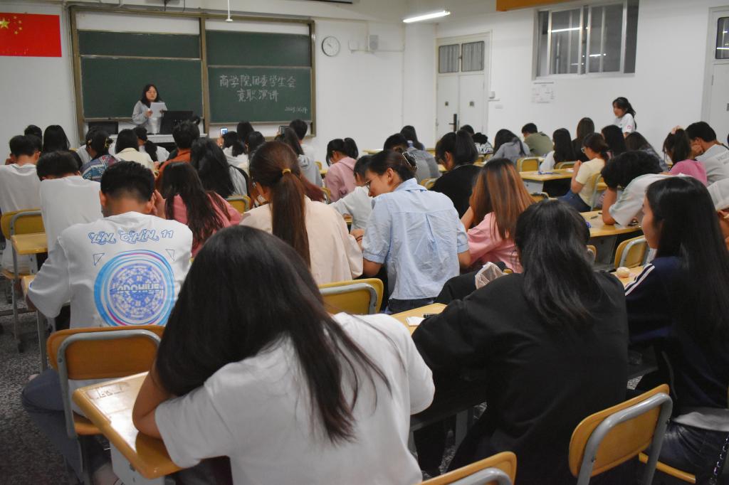 为提高学生干部综合能力,营造和谐向上的学习和生活环境,更好地服务于学院和师生。2023年6月14日19:00,商学院在13教311教室举办团干换届竞职演讲大会,商学院团委书记李胤珠老师出席此次活动。