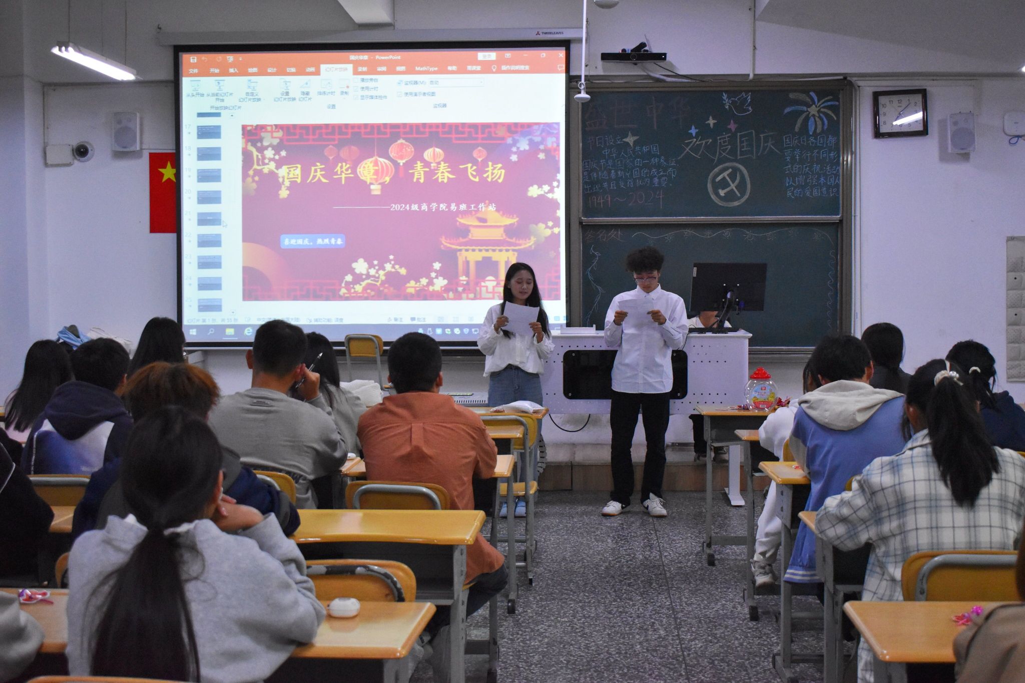 2024年10月8日19:00,玉溪师范学院商学院易班工作站于13教210室开展关于国庆中秋爱国主题活动,增强同学们的爱国意识,本次活动由易班工作站主持,参与同学众多,现场热闹非凡。