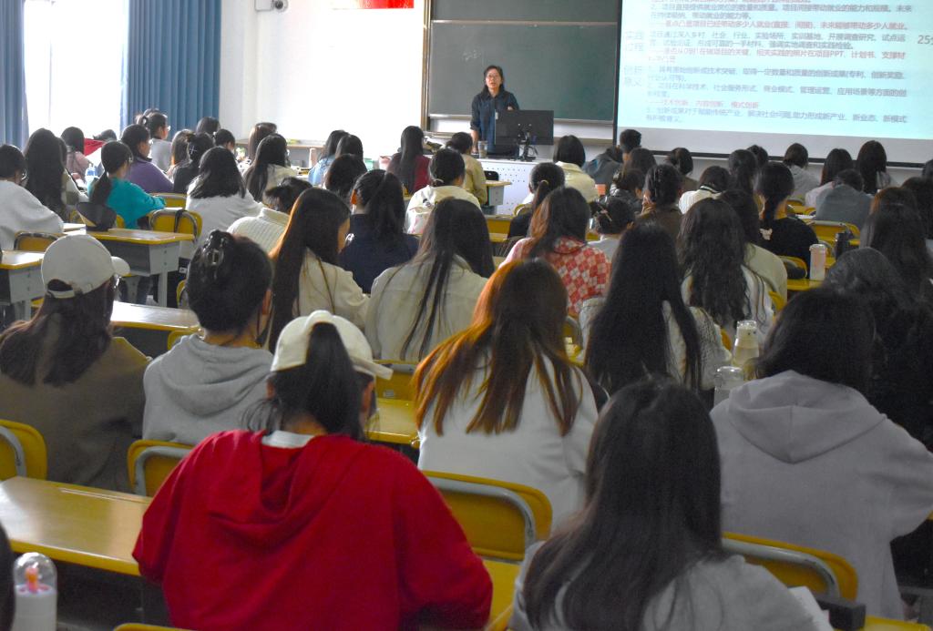 活动伊始,李老师介绍了创新创业赛事的含金量,让同学们清晰地了解到创新创业大赛带来的机遇和挑战。紧接着围绕商学院往年获奖创业项目,教授如何构建创业计划书框架,激励同学积极参加比赛。李老师表示,创新就是要找好创新点,即团队自身选择的创新点要具有特色,要同时做好产品构思和数据分析等步骤。同学们聚精会神,专心听讲,认真笔记,收获满满。