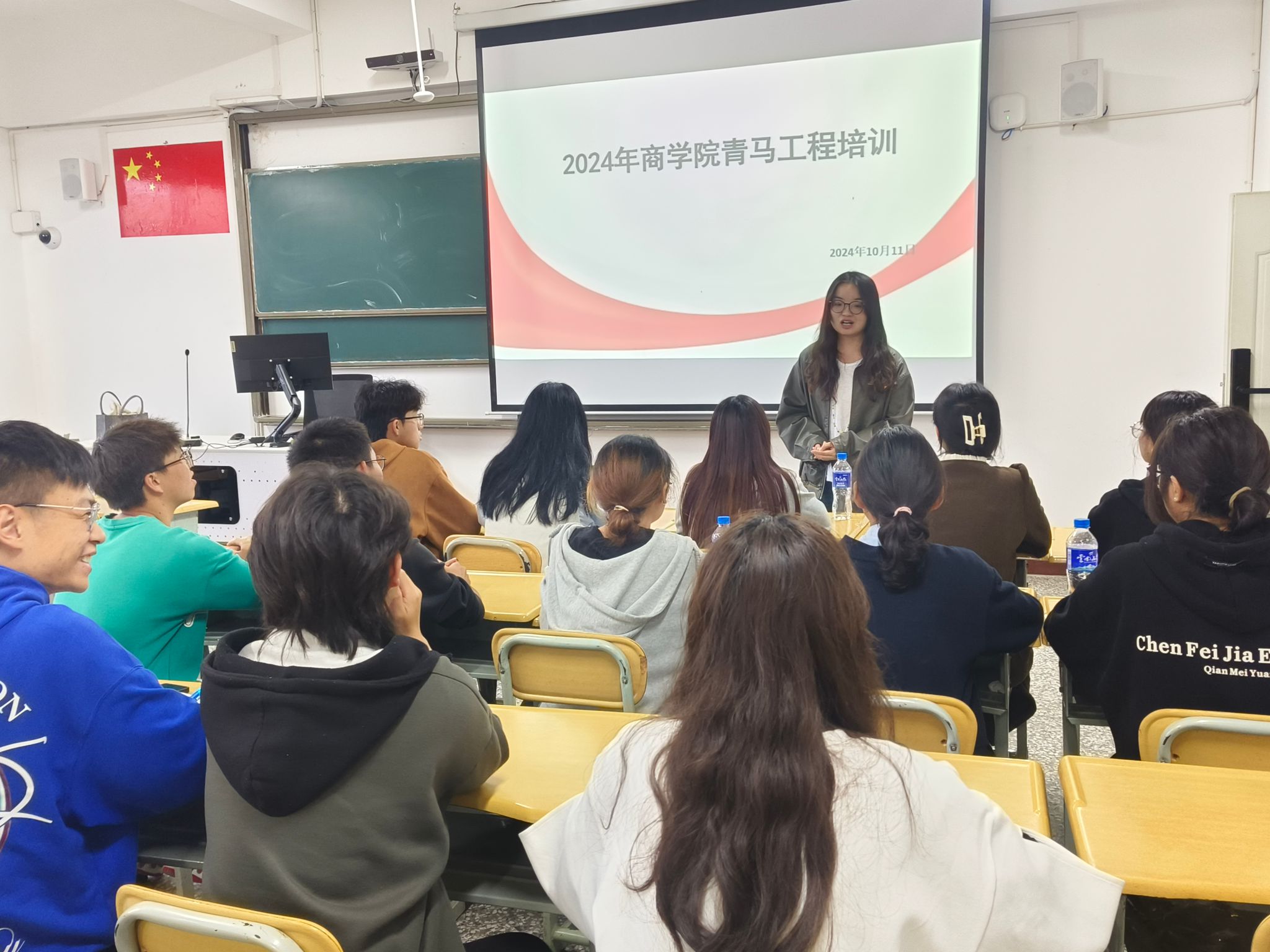 在培训过程中,团委书记马老师首先介绍了“青马工程”的含义以及“青马工程”集中培训的目的,在商学院广大优秀青年马克思主义者心中播下了红色的种子。在马老师的深刻解读下,“青马工程”熠熠生辉。最后,马艳琼老师总结了发言内容,号召青年在时代发展、民族复兴中坚定个人理想,以创新思想、系统观念引领能力塑造,在积极探索、大胆实践中磨炼奋斗品格。