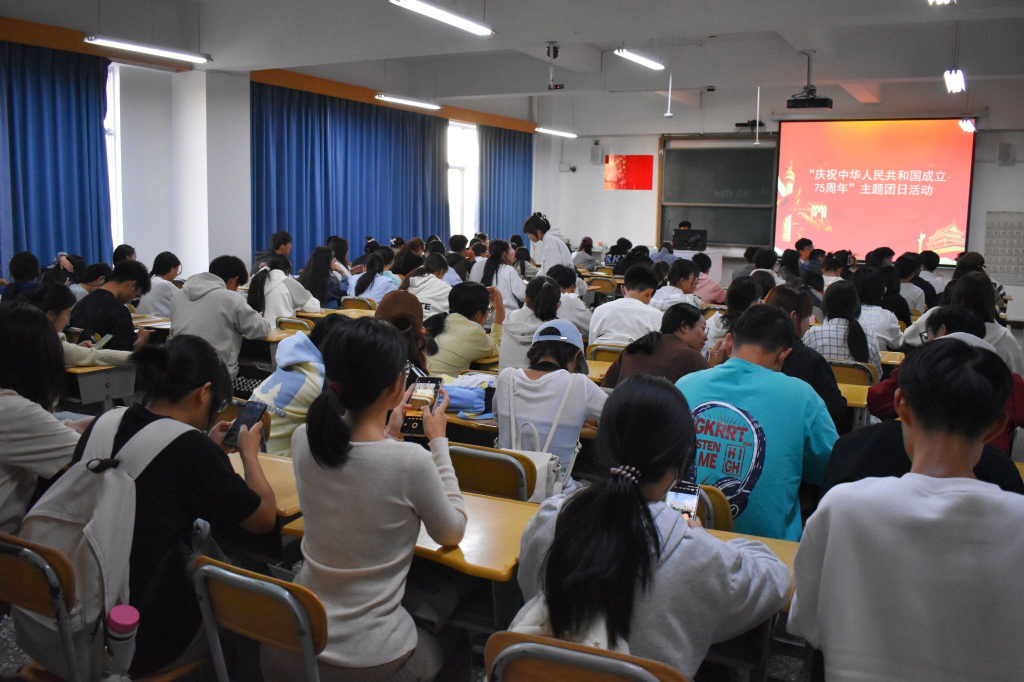 玉溪师范学院商学院于10月29日下午18:00在13教学楼211室举办了 “庆祝中华人民共和国成立 75 周年” 主题团日活动。本次活动旨在激发玉溪师范学院商学院全体同学的爱国热情,弘扬民族精神。活动现场气氛热烈,同学们积极参与,通过各种形式表达对祖国的热爱和祝福。