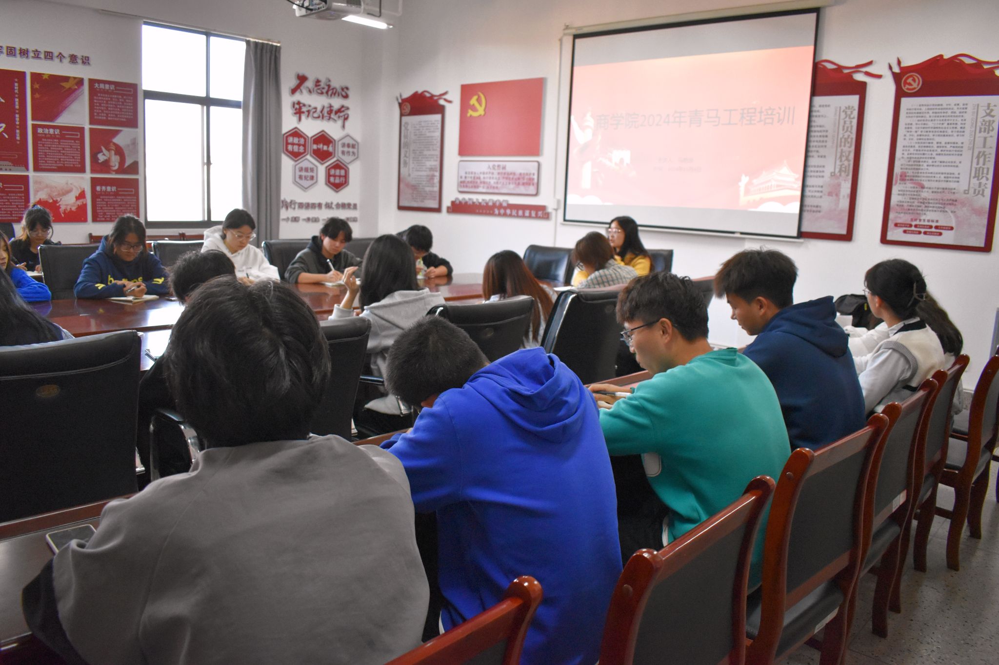 为了进一步提升学生素养、明确责任担当、坚定理想信念,玉溪师范学院商学院坚持深入推进青年马克思主义者培养工程。由商学院团委书记马艳琼老师主讲的“青马工程”宣传讲座于11月4日17:00在商学院实训大楼601成功举行,参会人员为商学院团委学生会主席团及各部长。