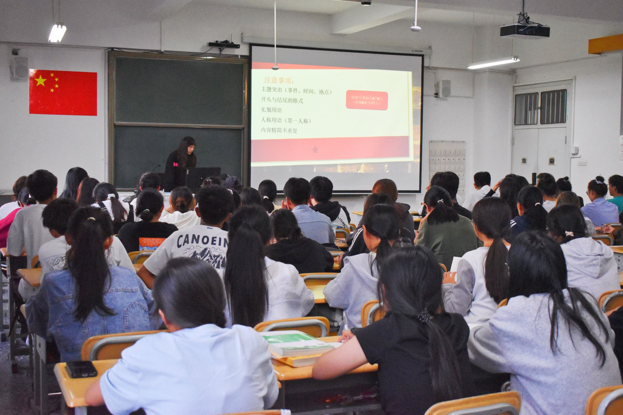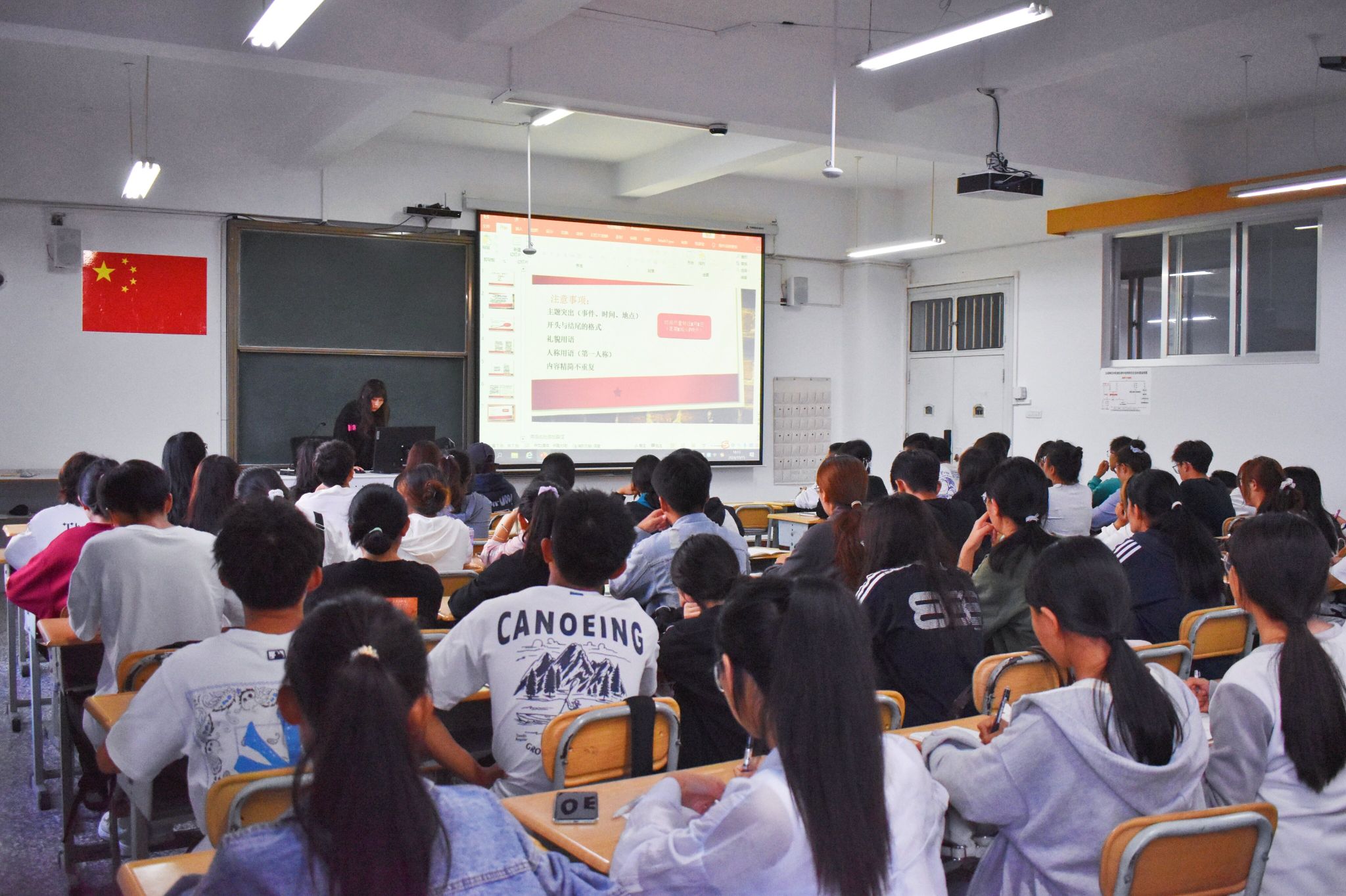 为进一步提升玉溪师范学院商学院团委学生会新任干事的高效沟通能力,增强信息传递能力的准确性,最大程度地确保校园活动的顺利开展,玉溪师范学院商学院团委学生会于2024年10月15日18:00在13教211教室开展了公文写作培训活动,本次活动由组织部部长王馨然主讲,参会人员为商学院团委学生会的全体成员。