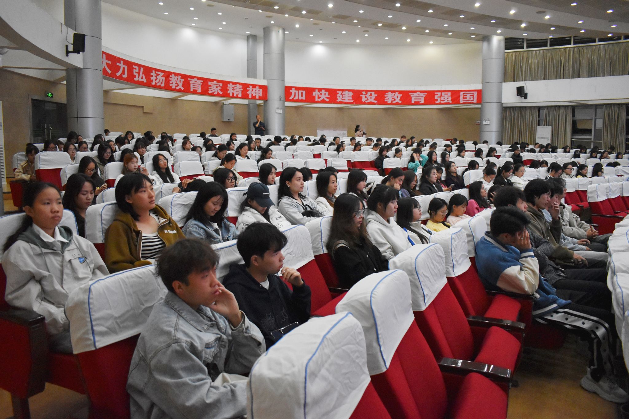 讲座在同学们的期待中拉开序幕,主讲人从个人测评、就业环境分析、职业目标、实现职业目标的具体行动和成效、职业目标及行动的动态调整等多个方面进行了有关职业规划的讲授。在讲授过程中,同学们认真听讲同时也在思考自己的未来职业规划。此外,制定合理的职业规划不仅能帮助同学们在大学期间有针对性地学习和实践,还能为他们的未来职业生涯奠定坚实的基础。
