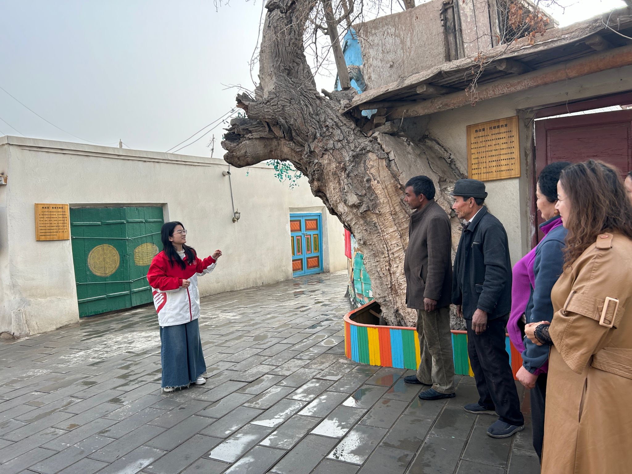在商学院四年的学习中,陈楠深耕旅游管理专业,注重理论与实践结合,积极参与学院“文旅融合创新实践项目”,培养了对文化遗产保护的敏锐洞察力。初到龟兹小巷,她发现游客对深厚的历史底蕴“走马观花”,便主动请缨担任义务解说员。白天走访百年古民居、记录居民口述史;夜晚查阅文献、请教专家,将龟兹建筑特色、手工艺非遗与商科营销思维结合,设计出“故事+体验”的沉浸式讲解方案。如今,她手指斑驳砖墙讲述丝路往事的身影,已成为小巷里最动人的风景。