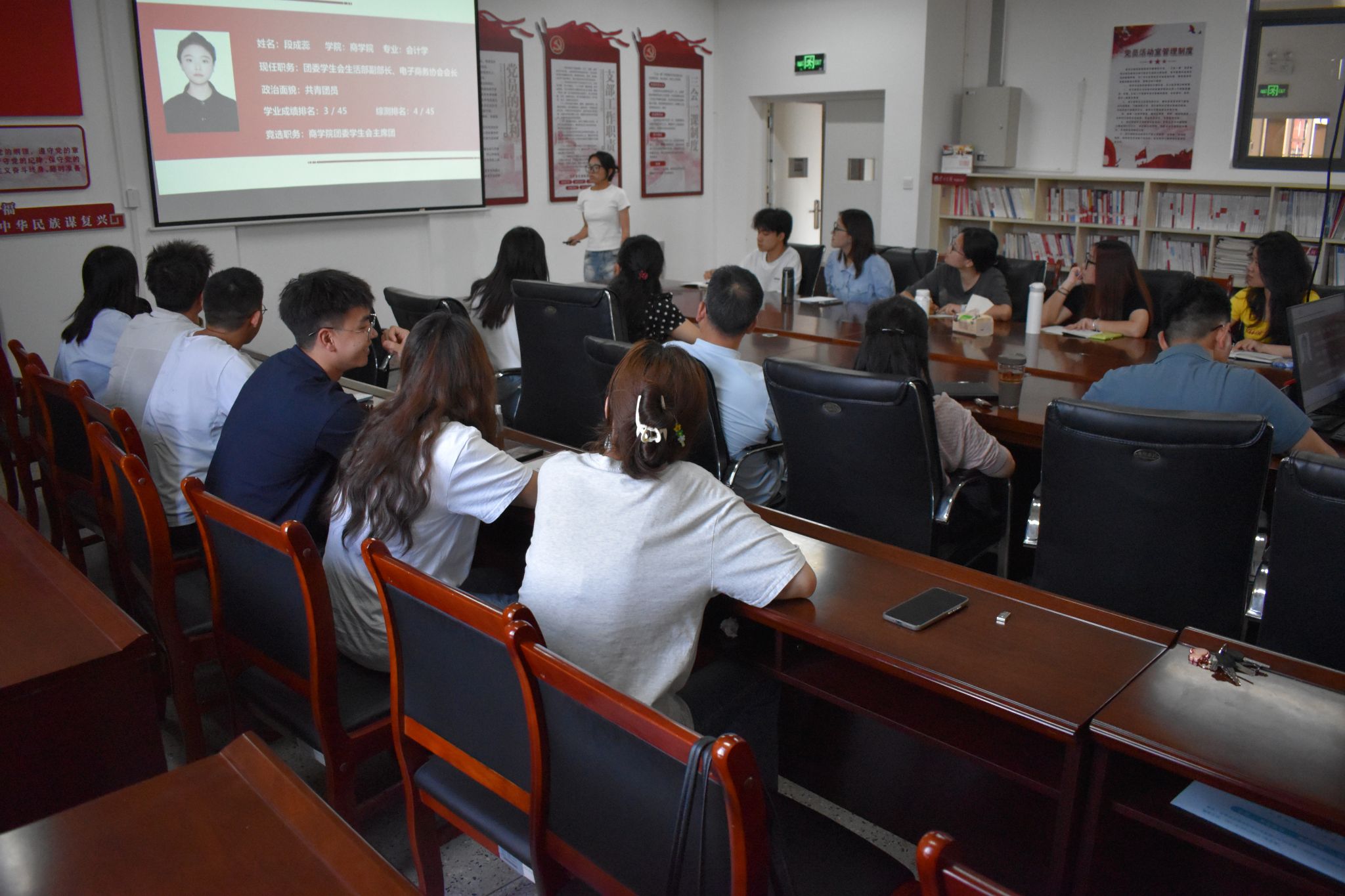 2025 年5 月19 日17:30,玉溪师范学院商学院团委学生会主席团竞选活动在实训大楼 601 室举行。商学院党委书记姜芹春,辅导员杨加堂、马艳琼、李胤珠、马希,以及团委学生会上届主席团成员出席活动。