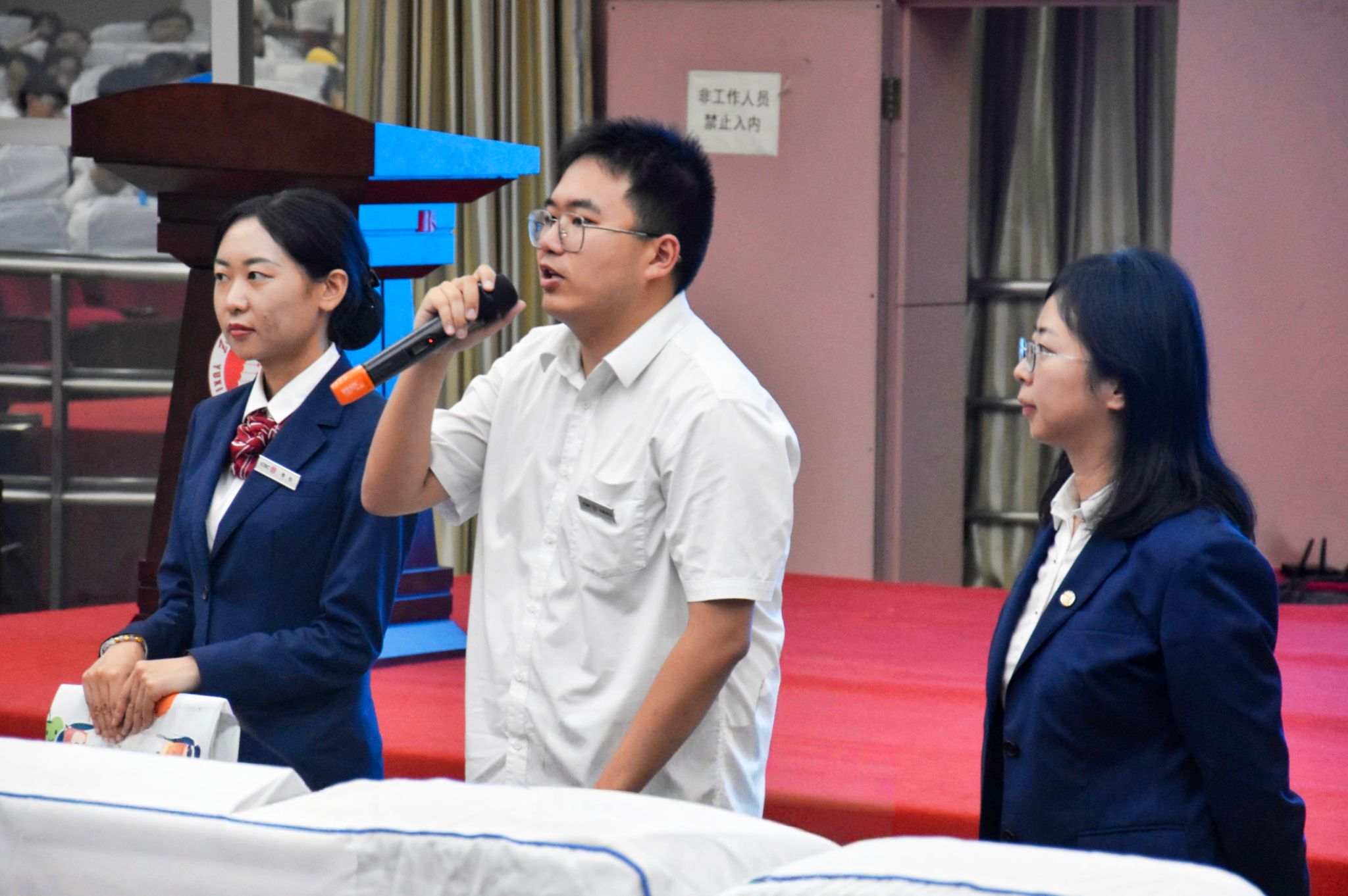 互动环节将气氛推向高潮。同学们分组进行“职场微情境”模拟跨部门协同,评委现场点评礼仪细节与沟通技巧,台上台下笑声、掌声、惊叹声交织。短短 30 分钟,同学们在沉浸式体验中深刻领会到“文明力”就是“竞争力”。