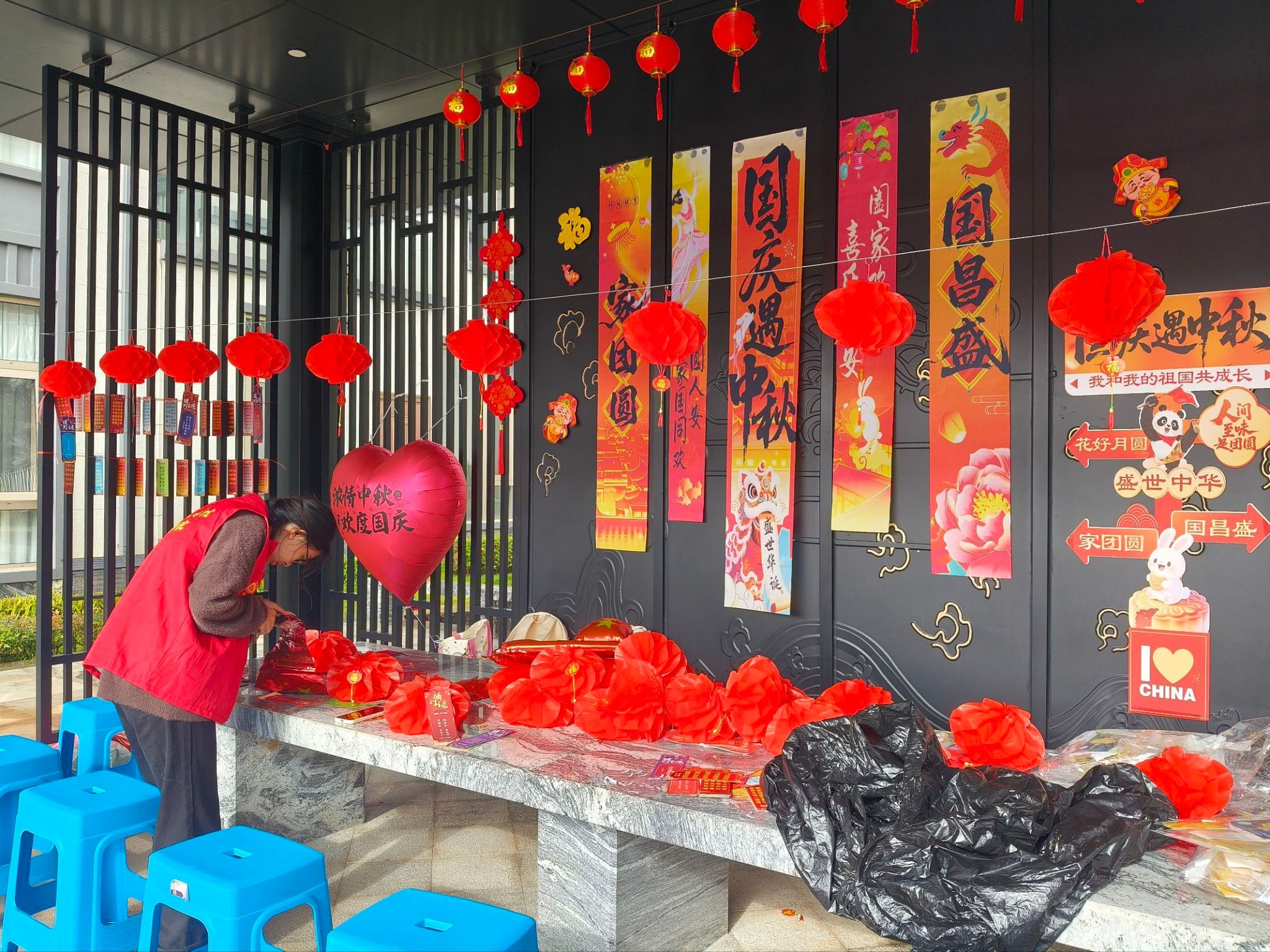 在抚仙瑞园,志愿者们把月饼材料、豆沙、模具都摆好,和居民们一起揉面、包馅、压模。活动中,志愿者们针对老年人和儿童群体,开展手把手教学,细致讲解每一个制作步骤。他们的专业服务不仅让社区居民在月饼香与灯笼红中感受中秋氛围,更增进了邻里间的情谊。“教得真仔细,这月饼我和孙子一起做,太有意义了!”一位参与活动的社区老人笑着说。旁边的灯笼DIY区更热闹,志愿者和小朋友们一起折骨架、绑流苏,一个个大红灯笼很快就挂满了活动场地。