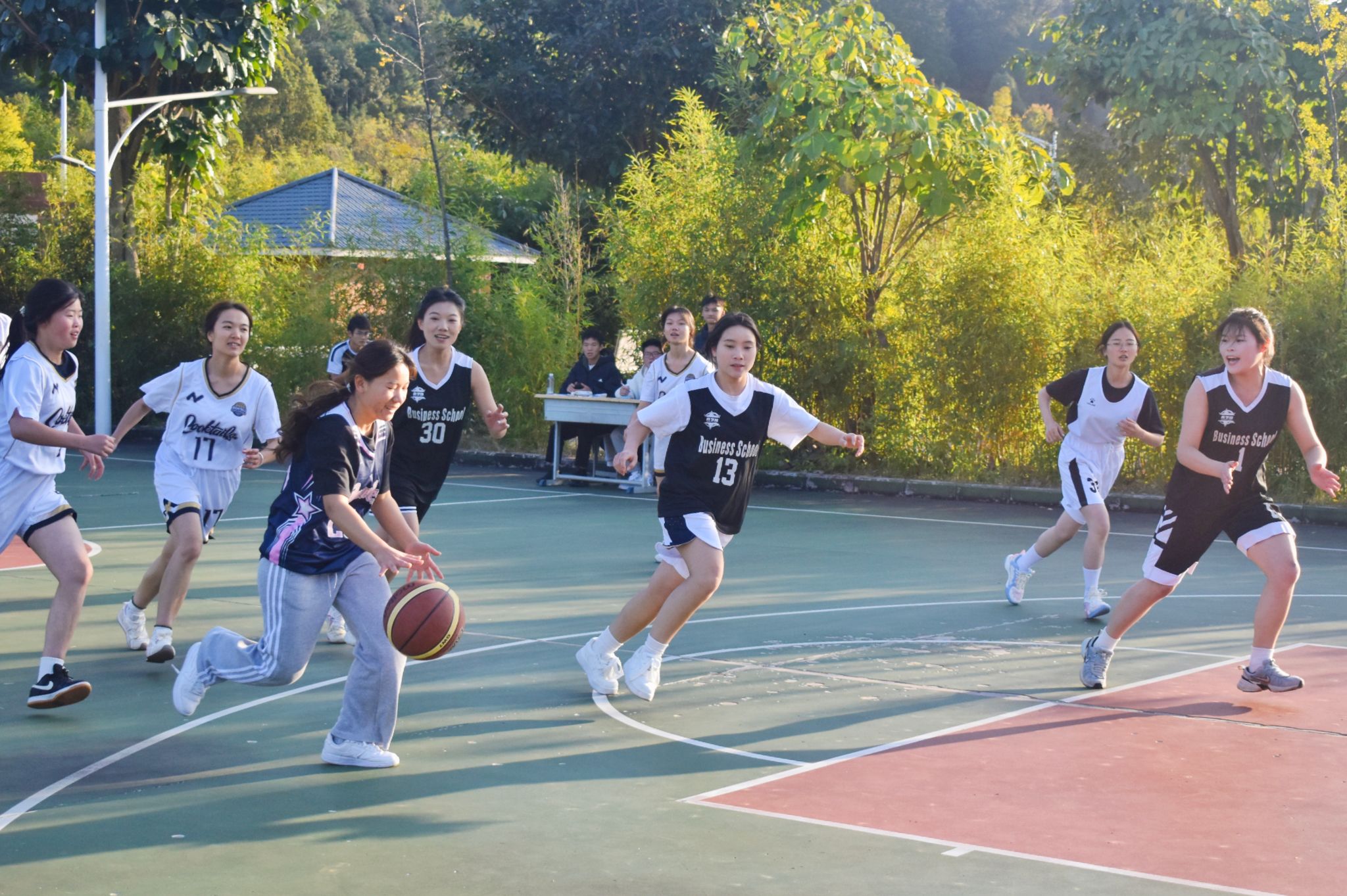 秋日余晖洒遍球场,哨声一响,赛事即刻进入白热化。男队赛场之上,队员们配合默契,突破防线、精准传球、起跳投篮一气呵成,每一次攻防转换都扣人心弦;女队赛场同样精彩纷呈,姑娘们身姿矫健、技术娴熟,拼抢积极,防守严密,用实力展现了巾帼不让须眉的竞技风采与出色的团队协作能力。场边,各班啦啦队的呐喊助威声此起彼伏,掌声与欢呼声交织回荡,为深秋的校园增添了无限暖意与活力,成为赛场上最动人的背景音。