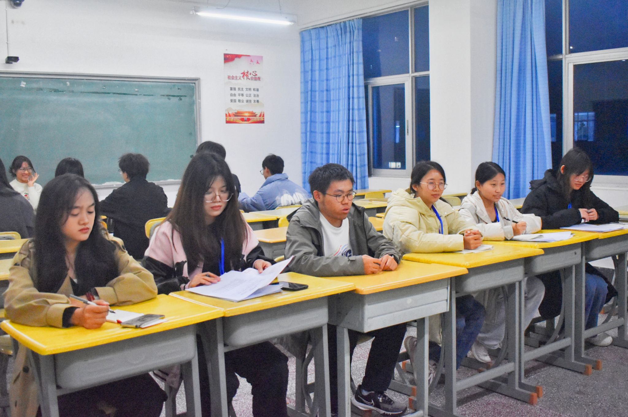 为强化干事责任担当,提升团学工作效能与服务质量,2025年12月5日18:30,玉溪师范学院商学院团委学生会在7教404、407、408教室同步开展团干考核工作,全体团委学生会成员全程参与。