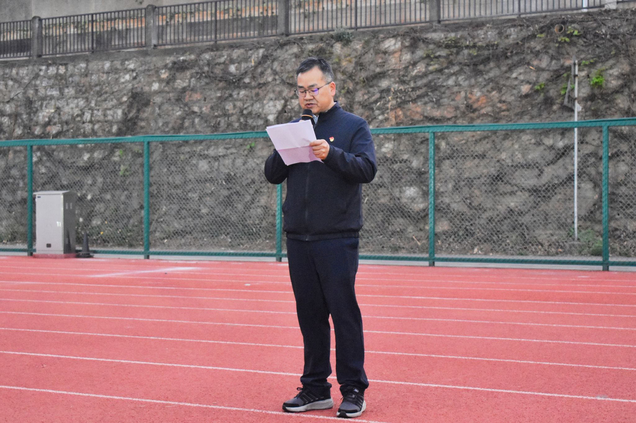 仪式现场,全体师生整齐列队、精神饱满。国旗护卫队队员步履坚定、庄严持旗,在全体师生的注目下稳步行进至升旗台。伴随着雄壮的《义勇军进行曲》,五星红旗冉冉升起,全场师生肃立行注目礼,心中家国情怀油然而生。升旗仪式结束,商学院党委书记姜芹春作了国旗下讲话。他全面回顾了学院过去一年在科研项目、研究生教育、专业建设、人才培养等方面取得的优异成绩,充分肯定了同学们在学科竞赛、社会实践、校园活动中的出色表现,寄语全体学子,要锤炼过硬本领、树立远大目标、涵养高尚品德,以实干担当践行初心使命,以奋斗姿态奔赴新征程,用青春力量书写精彩答卷。在场学生认真聆听、备受鼓舞,将殷切嘱托转化为勤学笃行的奋进动力。